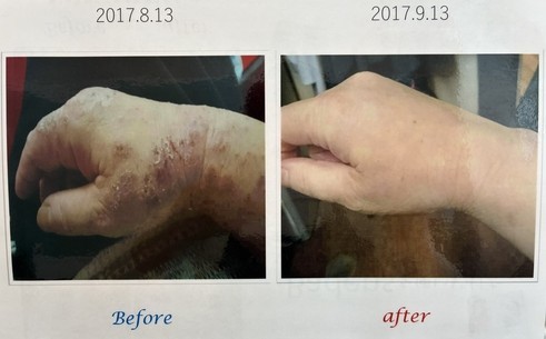 このようにシャンプーや薬剤で肌荒れした美容師さんの手荒れも改善されています。
